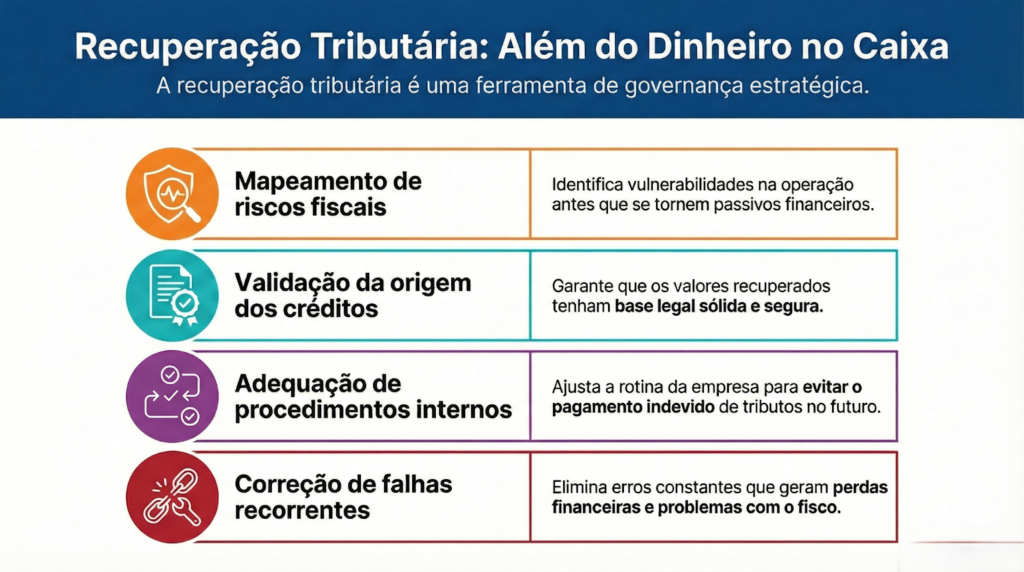 O foco não é apenas recuperar valores, mas garantir que a empresa esteja tecnicamente preparada para justificar esses créditos perante o fisco.