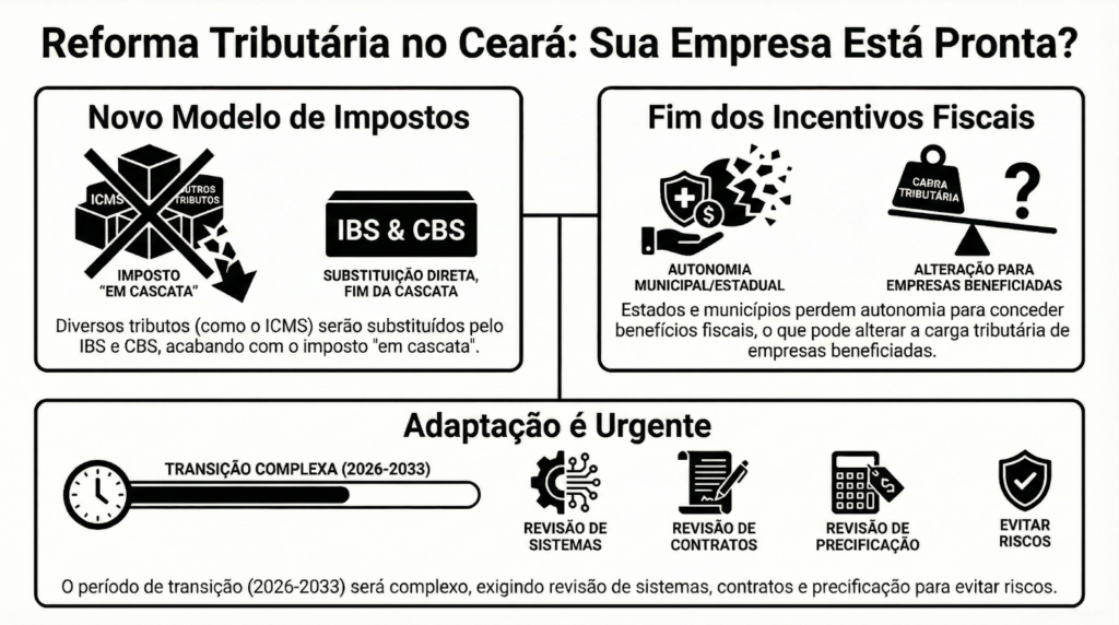 A transição tributária que começa em 2026 com a Lei Complementar 214/2025 representa uma transformação profunda para empresas em todo o Brasil — inclusive no Ceará.